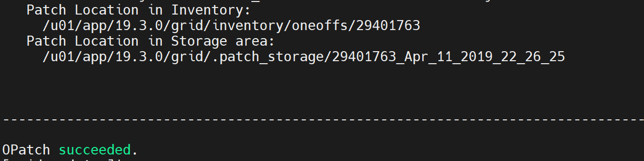 /u01/app/19.3.0/grid/OPatch/opatchauto apply /soft/33509923 -oh /u01/app/19.3.0/grid