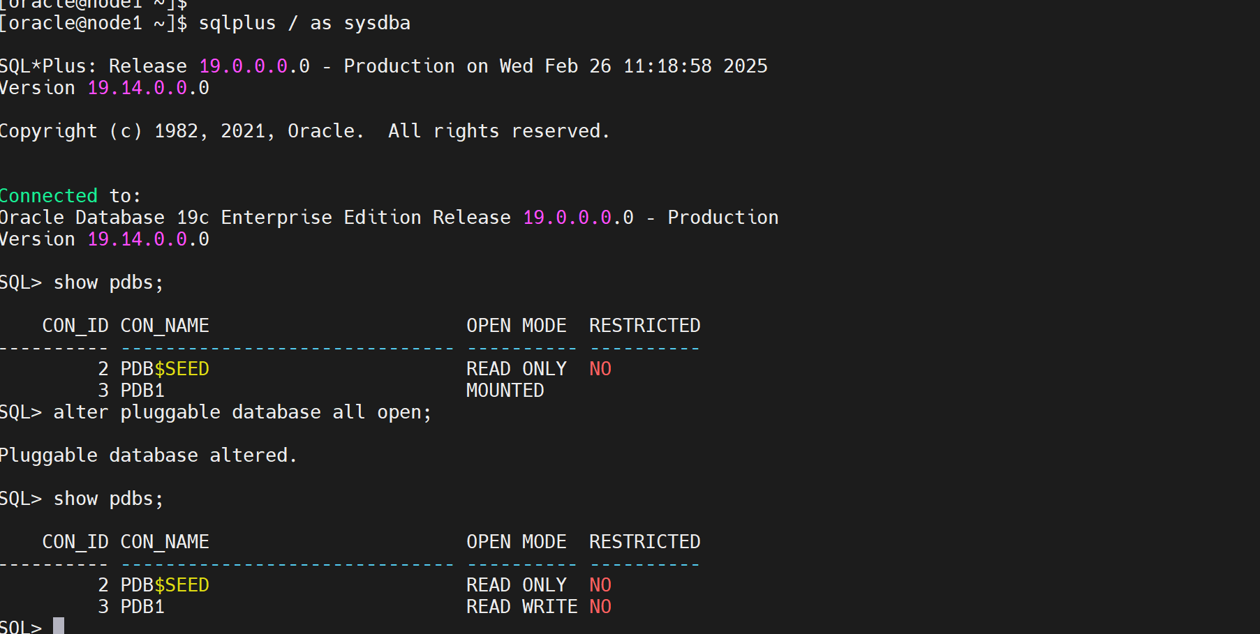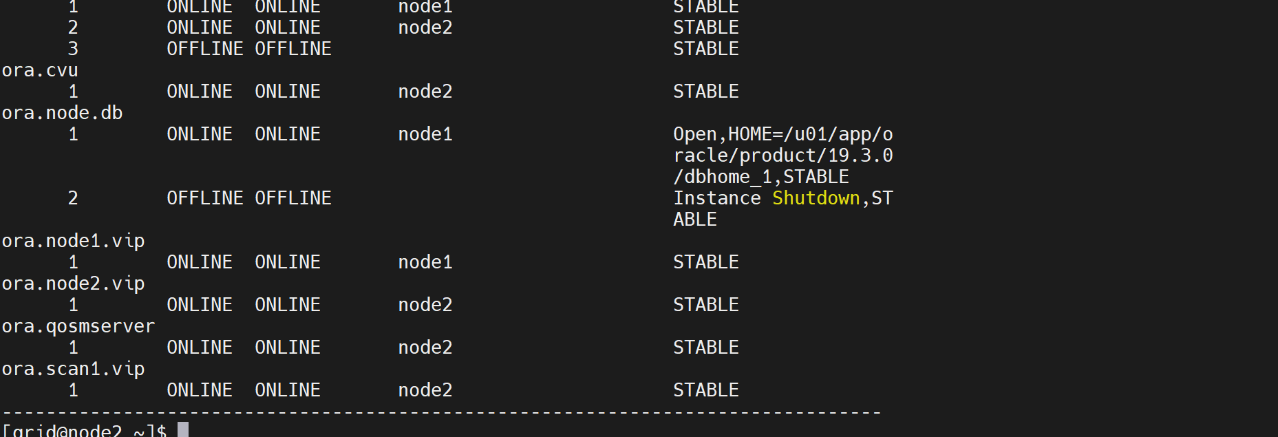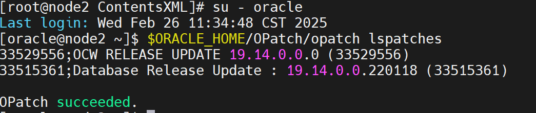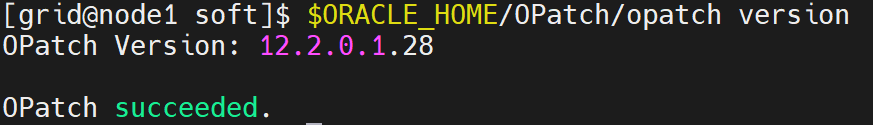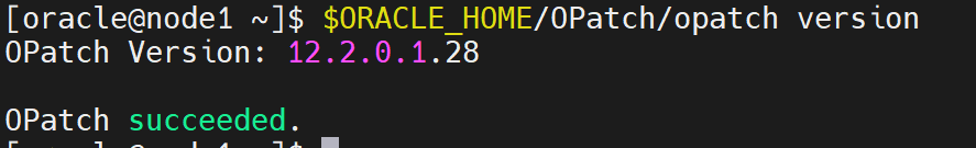 在node1/node2两个节点上分别进入oracle/grid用户进行版本查询
