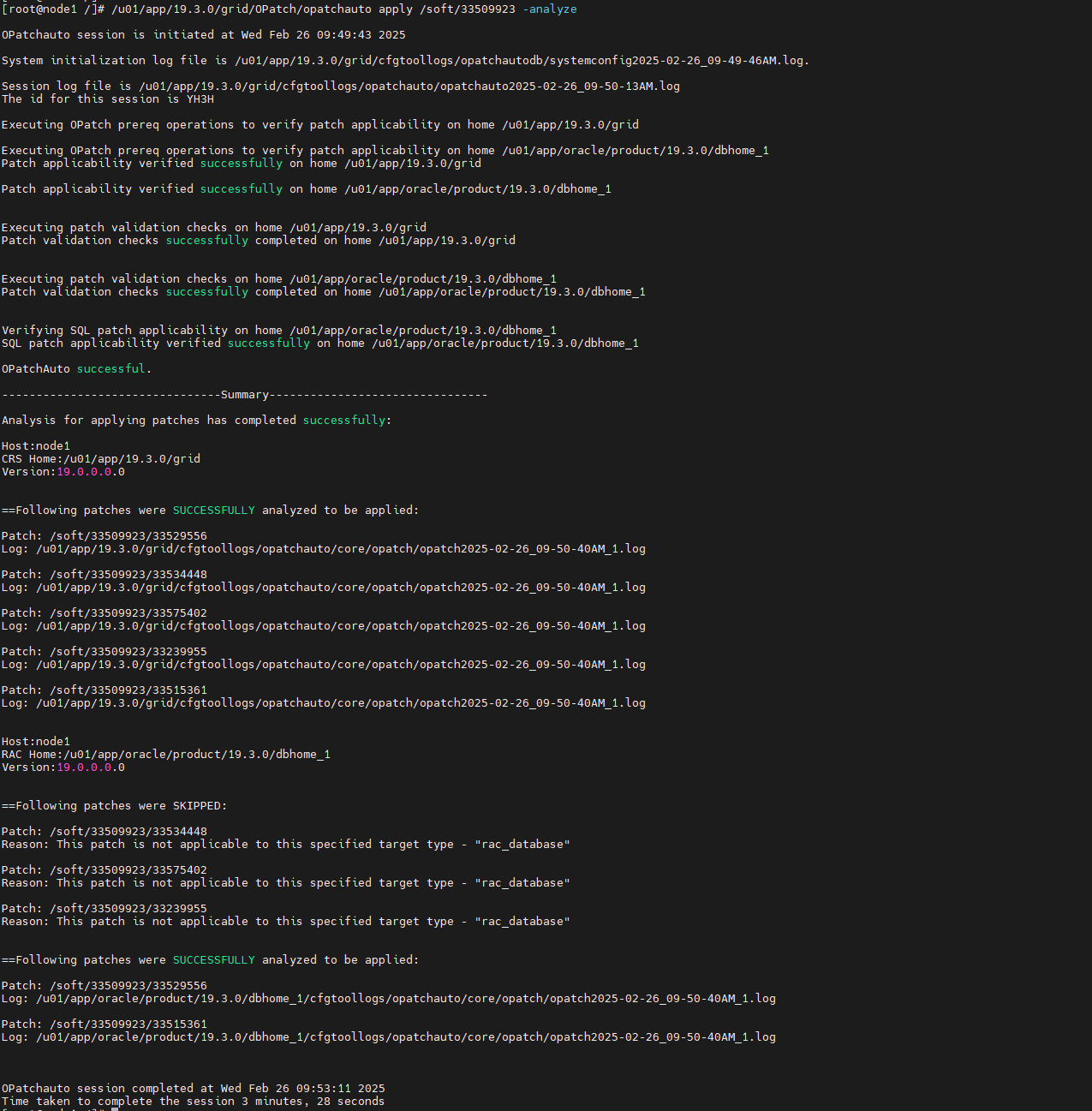 cd //u01/app/19.3.0/grid/OPatch/opatchauto apply /soft/33509923 -analyze