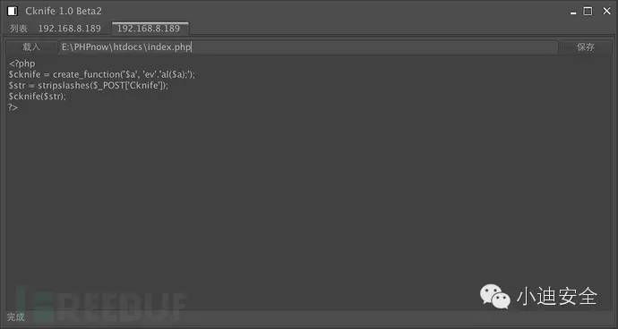 这里我用匿名函数来做例子,用create_function创建了一个匿名函数$cknife,用它来代替eval。如下代码为变形后的一句话,能够通过安全狗的第一步检测(但是安全狗的网马查杀功能依然能扫到,至于如何躲避网马查杀不在本文讨论范围,有兴趣的朋友可以自行研究,因为我相信当你能灵活操作服务器上的任何文件时,留一个不被查杀的后门还是没有什么问题的)。