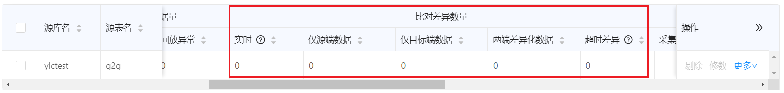 - 全加增同步任务,在任务进入增量阶段后(全量任务完成,并且已经有增量数据同步),界面全量比对差异数据量不会再更新。