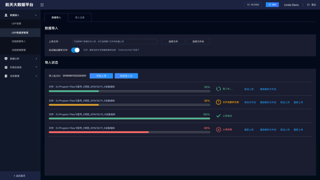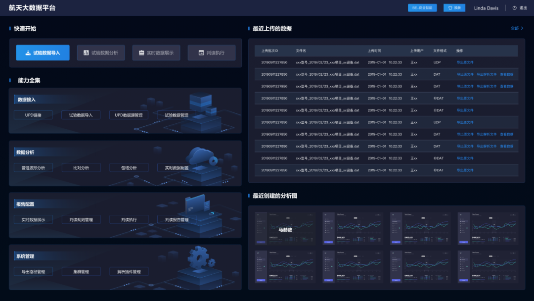 多型号、多批次任务数据统一存储与管理,形成数据资产,为后续数据分析、挖掘提供支撑。