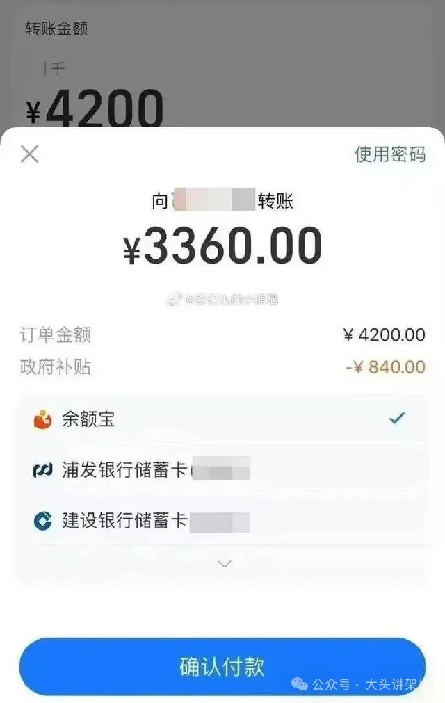 有网友晒出,在昨天下午14:40-14:45的这段时间里,通过支付宝支付时,均被提示“政府补贴”,减免优惠20%。