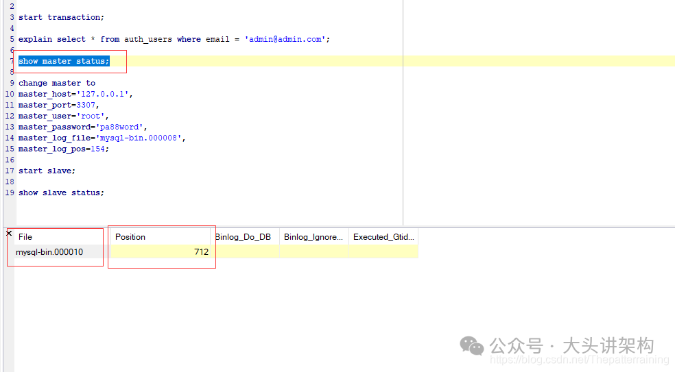 master_log_pos=154; --要开始同步的具体指针位置 上面的position参数