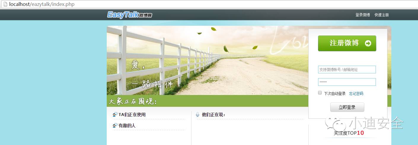 ②解压到www的easytalk目录下,按照提示一步步安装即可,遇到问题自行百度或谷歌,成功后访问如下图:
