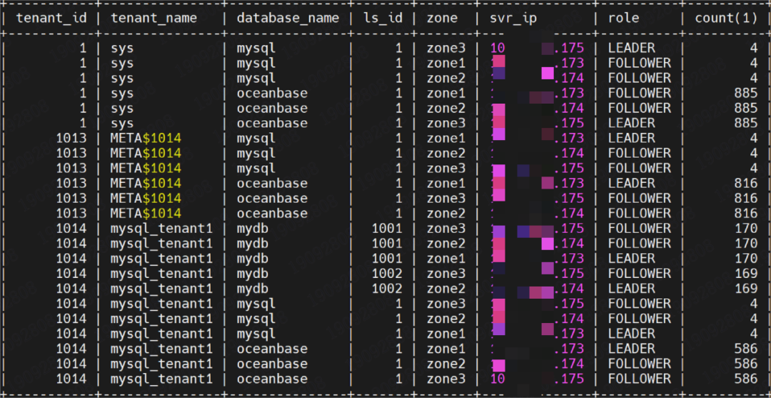 SELECT a.tenant_id,tenant_name,database_name,ls_id,zone,svr_ip,role,count(1)