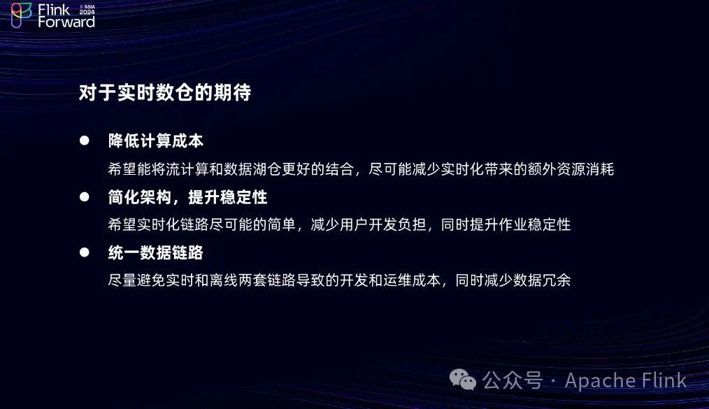 (1)降低计算成本:希望能够更好地结合流计算和数据湖仓,尽可能减少实时化所带来的额外资源消耗。