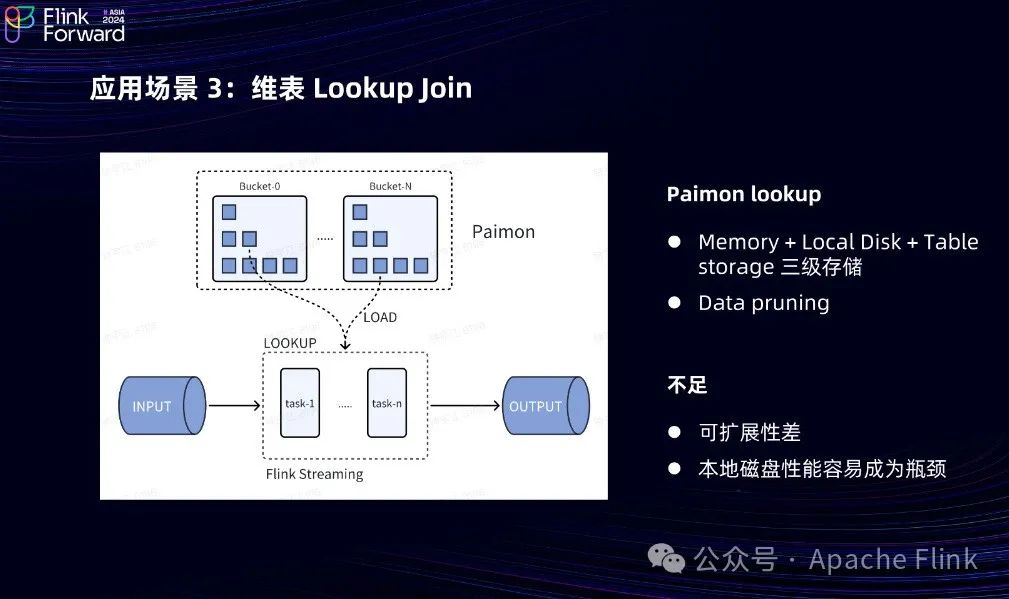 Paimon 支持作为 Lookup 的 source,支持将数据缓存在本地磁盘、按需从表存储中加载数据,还支持将数据缓存在 RocksDB 中。然而,它也有一些不足。