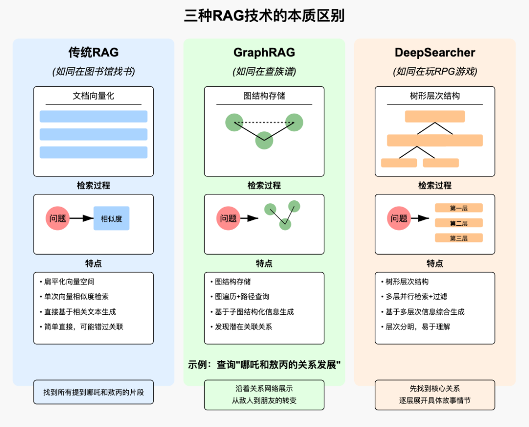 2.传统RAG、Graph RAG、DeepSearcher的本质区别