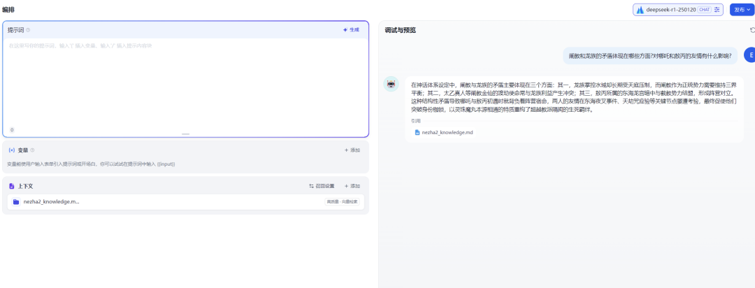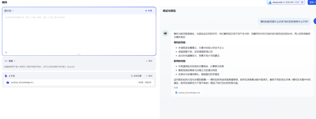 当你问"描述哪吒在剧中的重要关系"时,它会先找到核心关系