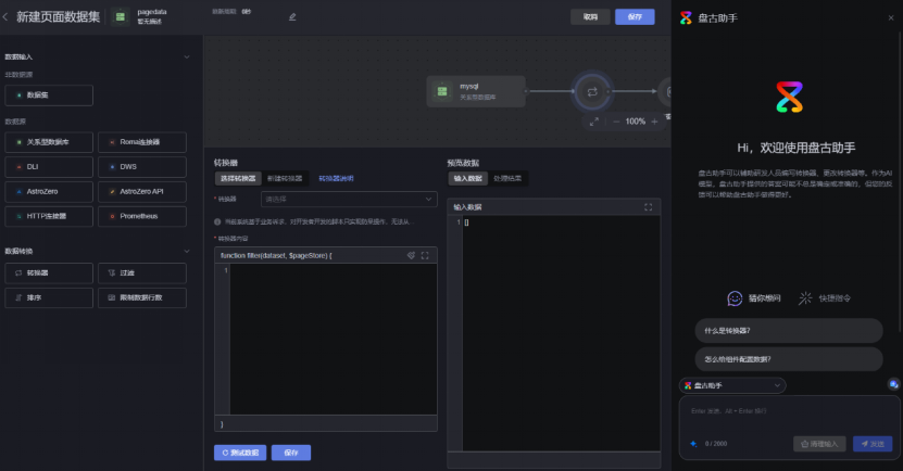数据转换器写代码太麻烦?代码效率不高?别担心,华为云 Astro 大屏应用盘古助手就像一位聪明的“代码小秘书”,能根据你的需求快速生成转换器代码,还能帮你优化现有代码,让数据处理更高效、更流畅。从此,你的开发效率翻倍,灵感也能随时落地。