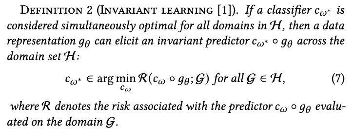然而,这种损失对分布偏移不鲁棒,因为在对齐损失(alignment loss)中的期望算子无法保证不变特征,导致较差的可迁移性(附录 B)。为了解决这一困境,我们将不变性学习融入我们的方法中。