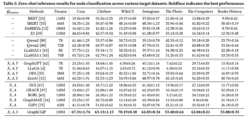 在零样本和少样本学习的应用场景中,GraphCLIP 均表现出优于现有方法。这些结果表明,构建一个高度通用且能够高效适应实际应用场景的图基础模型具有巨大潜力。