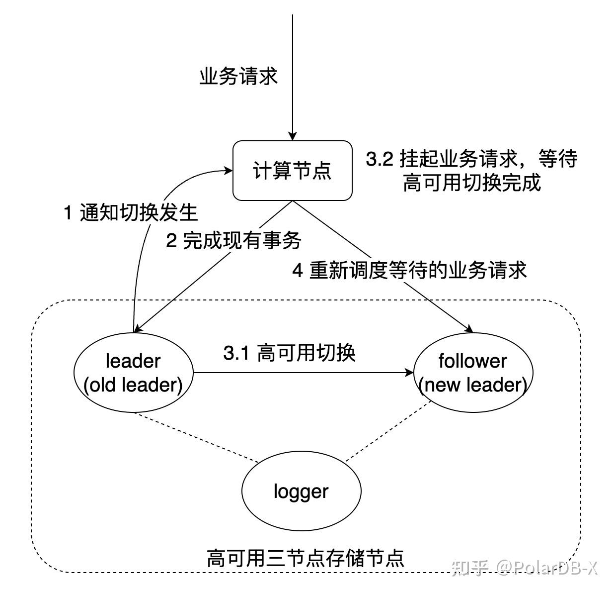 | 传统主从架构的切主 | 传统分布式架构的切主 | PolarDB-X架构的无感切换 | |