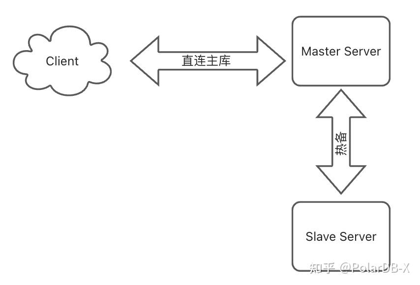 传统主从架构数据库,采用client <--> server的链路,只有一个server节点提供读写,另外一个节点作为冗余热备, 在面对主动切换场景时存在三大困境: