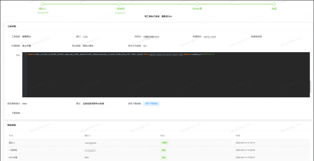 数据导出工单 应该说是一把双刃剑,既方便业务也方便 DBA,但是也带来了很多安全问题,我们现在所做的事情就是对其进行收口,尽可能的做到防止未经授权的数据泄露出去,也可以起到责任追溯的作用。