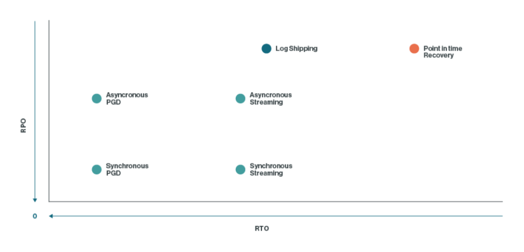 每种选项都允许您实现特定的RTO和RPO目标;下图显示了它们在这些领域的相对能力。