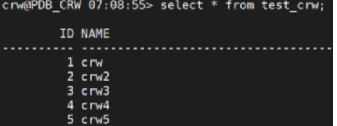 sqlplus 'crw/"Crw_1234"'@192.168.129.73:1521/PDB_CRW