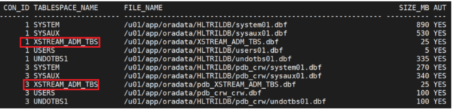 create tablespace XSTREAM_ADM_TBS datafile '/u01/app/oradata/XSTREAM_ADM_TBS.dbf' size 25m reuse autoextend on maxsize unlimited;