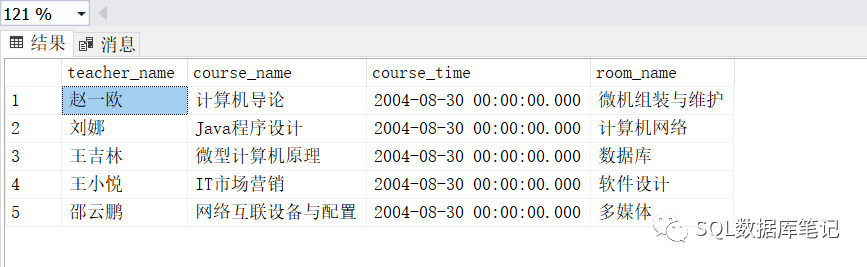 1.创建一个视图teacher_schedule,查询老师的课表情况,包含教师姓名,课程名称,课程时间: