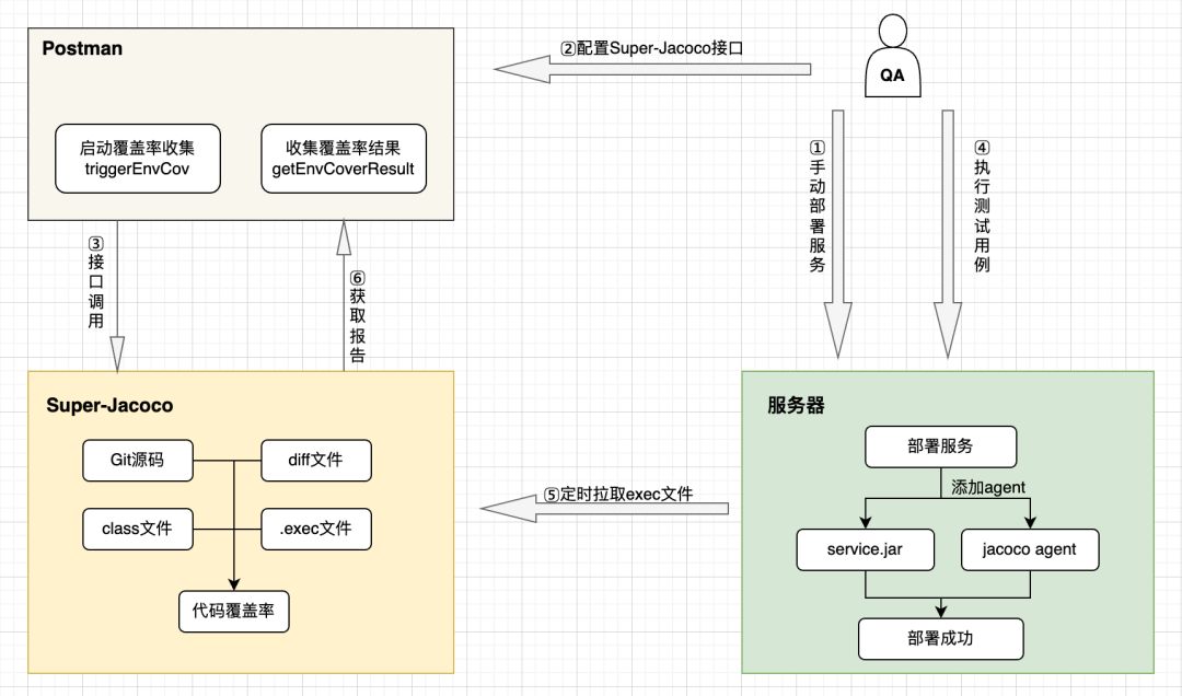 即可。依托于Super-Jacoco,基于Jacoco、Git二次开发,收集两个版本间增量代码差异。 用户执行测试用例,用例执行过程中Jacoco会记录代码覆盖情况。 生成可视化的HTML覆盖率报告,协助用例覆盖情况精准分析。