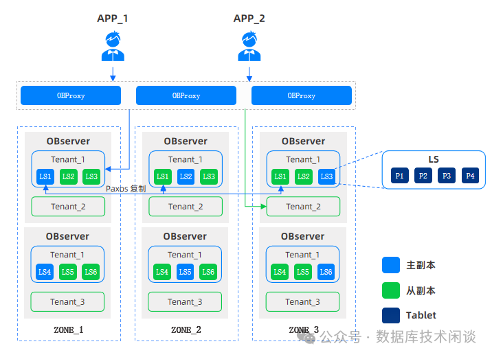 OBV4 版本的改进就是副本的概念还是不变,但是多副本同步的粒度变粗了,做成一批数据副本的同步集中管理。那这一批副本到底是多少数据呢,取决于租户的 PRIMARY_ZONE