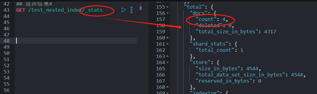 而执行 GET test_nested_index/_stats 返回文档数:4。