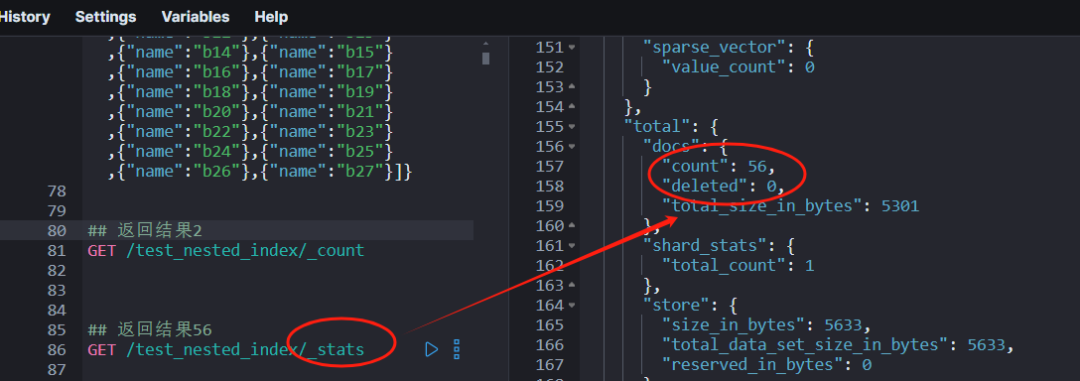 但是,当使用 _count 和 _stats 这两个API时,返回的结果可能会有显著差异,尤其是在处理含有nested字段的文档时。