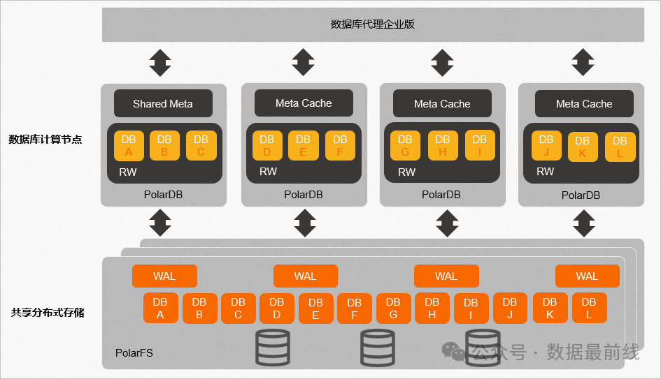 这种架构的好处是,RO 节点可以直接读取所有 RW 节点的数据,而不需要 RW 节点的日志同步,从而规避了需要等待日志同步而带来的性能下降。