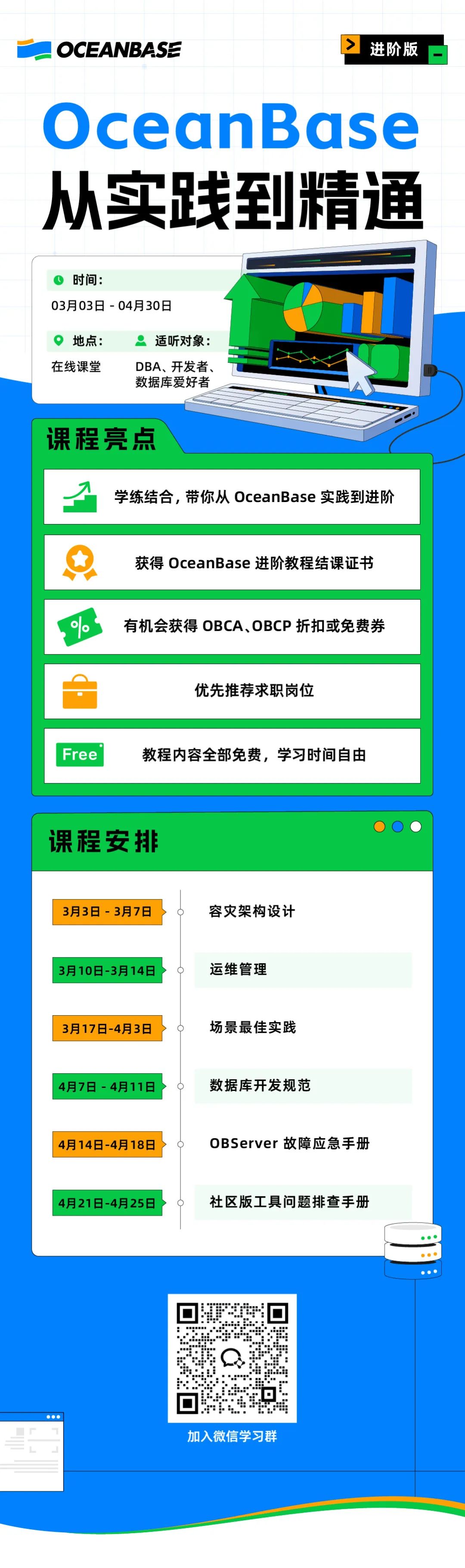 🎁 小惊喜:内容共建福利丰厚,点击下方链接,查看《OceanBase 4.x DBA 进阶教程》用户共建计划。