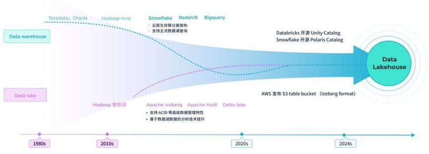 随着 Lakehouse 架构在 2024 年获得国际主流认可,2025 年将进入更深层次的发展阶段。基于对市场动态和用户实践的调研,我们认为接下来将有以下四大关键趋势: