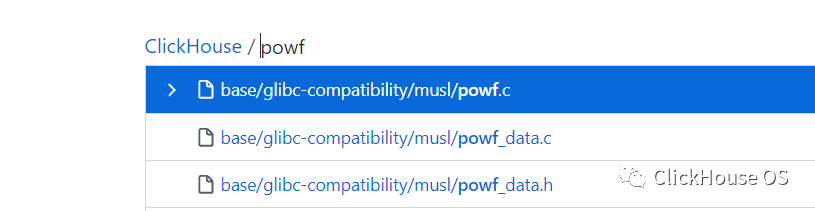 原因明确之后,解决方案便一目了然了:在base/glibc-compatibility中override powf的实现,好在clickhouse最新版中已经override了powf, 直接将相关代码copy过来重新编译即可。