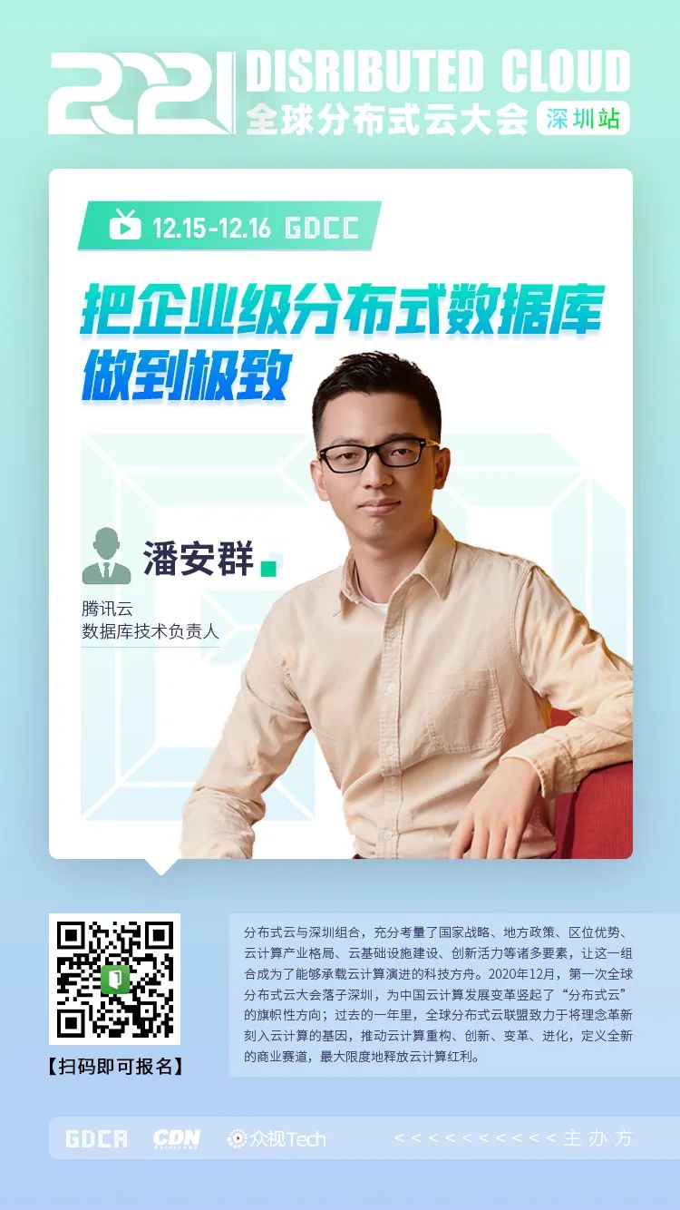 在12月16日举办的『分布式数据论坛』上,腾讯云数据库技术负责人 潘安群 先生将出席并发表题为《TDSQL:把企业级分布式数据库做到极致》的精彩演讲,敬请期待!