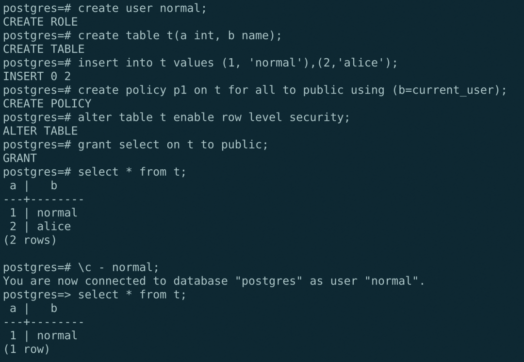 本文主要为介绍 RLS 实现原理,因此此处仅简单介绍下 RLS 的使用效果。