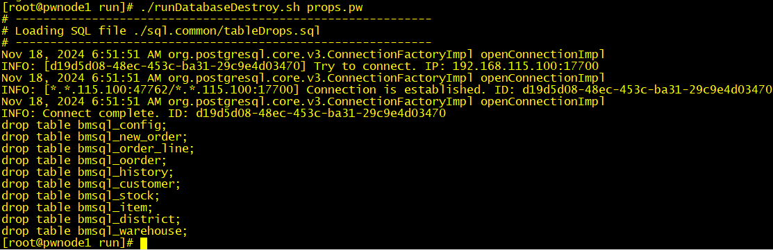 ./runDatabaseDestroy.sh props.pw