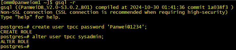 create user tpcc password 'Panwei@1234';