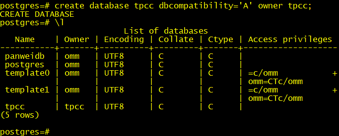 create database tpcc dbcompatibility='A' owner tpcc;