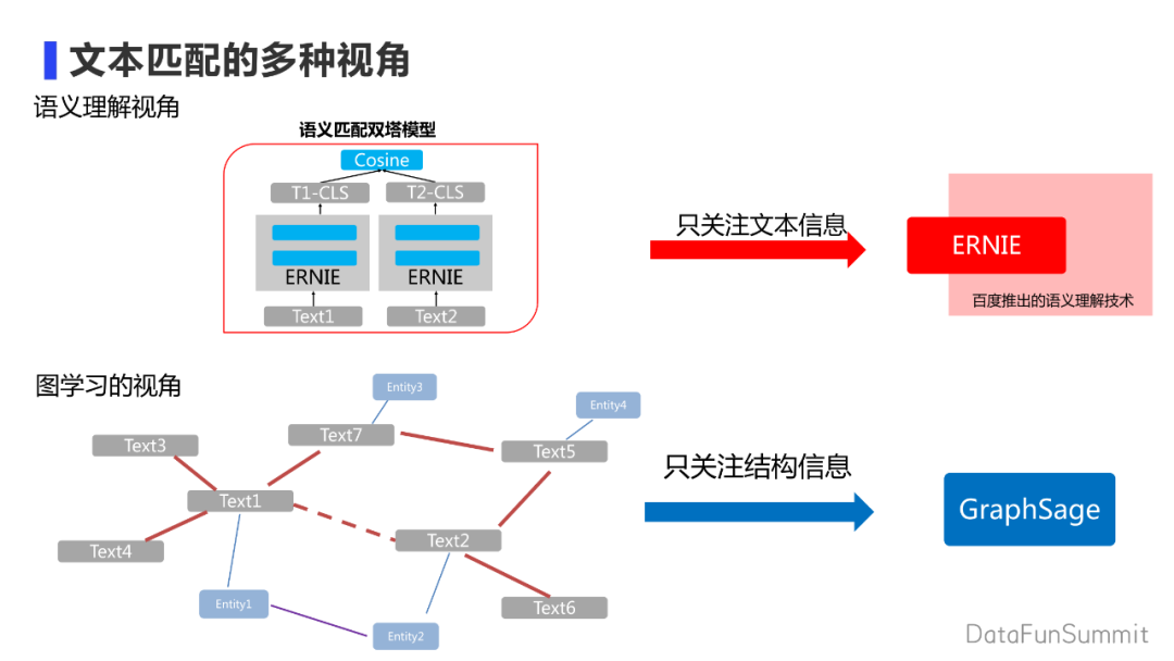 第1节主要介绍:文本匹配的两种视角、ERNIE预训练模型、GraphSAGE模型。