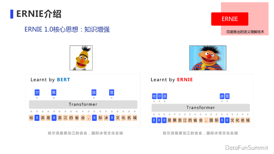 简单介绍一下ERNIE预训练模型。ERNIE1.0的核心思想是改进BERT的masklanguage model模块,用实体mask方法去取代随机mask token,让预训练模型一定强度的捕捉一些额外知识。