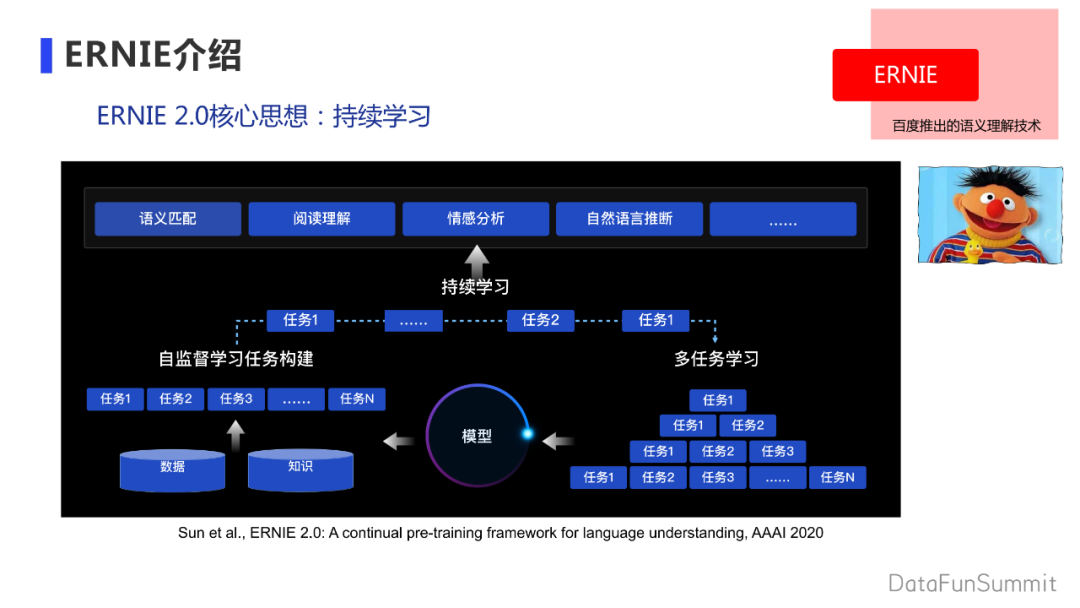 ERNIE2.0的升级主要是通过构建多个自监督学习任务,在多个数据上进行持续学习,进一步提升预训练模型的效果。