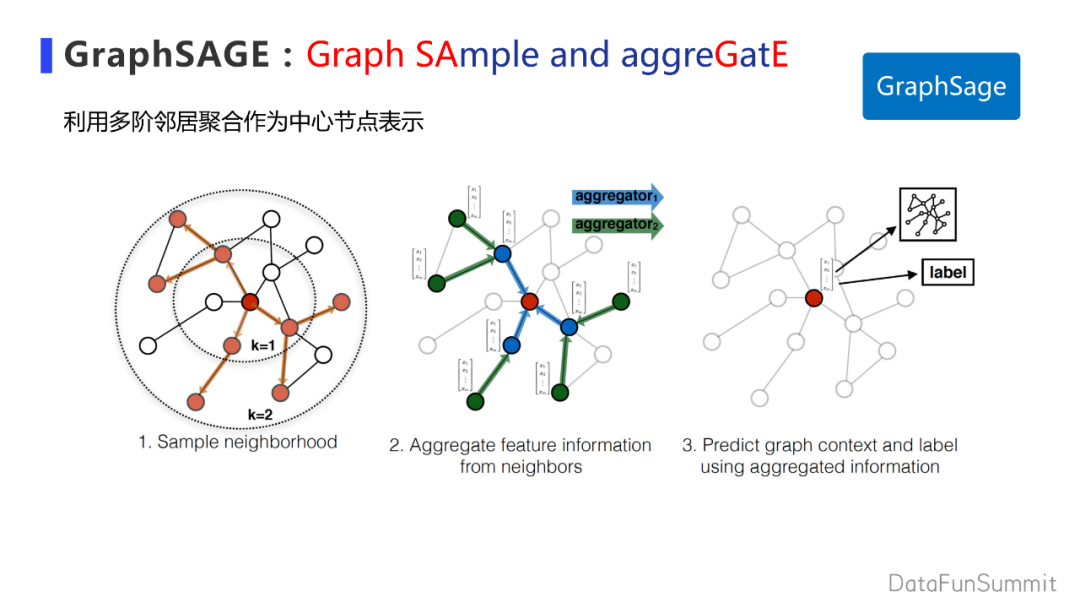 GraphSAGE全称Graph SAmple and aggreGatE(图采样与聚合),在图网络上特别是工业界的场景,当节点很多时去建模一个单一节点会涉及多阶段邻居,邻居的数量也会随着阶数指数暴涨。一般会通过采样的方式选取不同的邻居来聚合作为中间节点的特征。