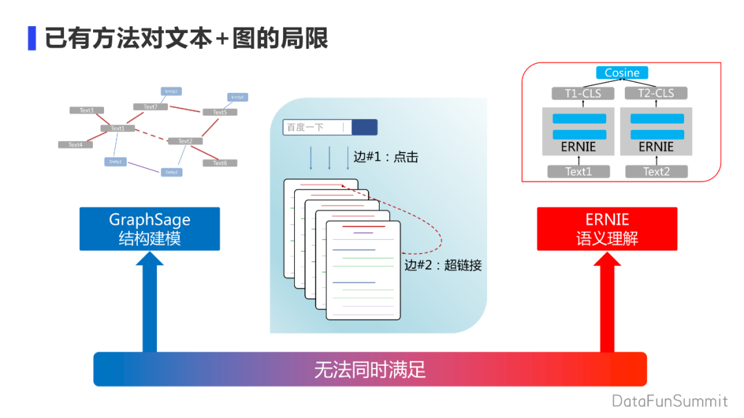 已有的办法无法同时满足结构建模和语义理解,如GraphSAGE模型对于链接关系和文本的建模会过于简单;像ERNIE这种纯语义模型,缺乏对外部知识的建模。
