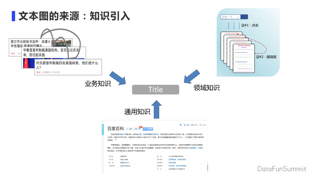 ③ 无法获取领域相关的知识时,可以通过像百科类的通用知识进行知识的补充。所有的业务知识,领域知识,通用知识会以图的方式绑定要想要表示的文本上。