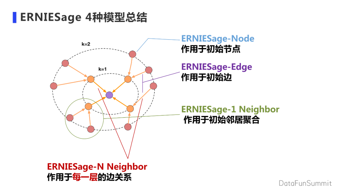 以上4种模型是按照ERNIR在整个图上的作用区域进行划分的。Node作用于初始节点上,Edge作用于初始边上,1 Neighbor是作用在局部的邻居上,N Neighbor是作用在整个文本图的每一个环节,计算复杂度递增。
