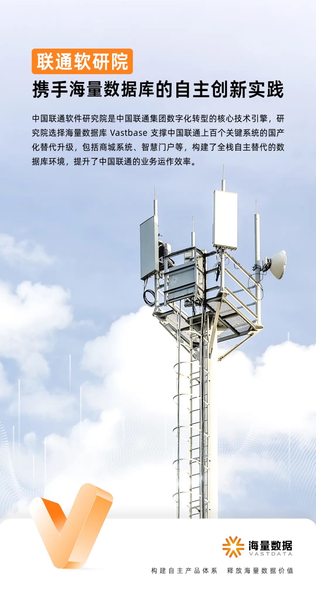 2024年,中国联通软件研究院携手海量数据,采用基于开源openGauss内核研发的海量数据库Vastbase,成功支撑了中国联通上百个关键系统的国产化替代升级,已在联通内部完成100+系统,350+节点的国产数据库的替换上线工作,以坚实的基础软件数据库底座,强有力地支撑了中国联通内部业务的需求。