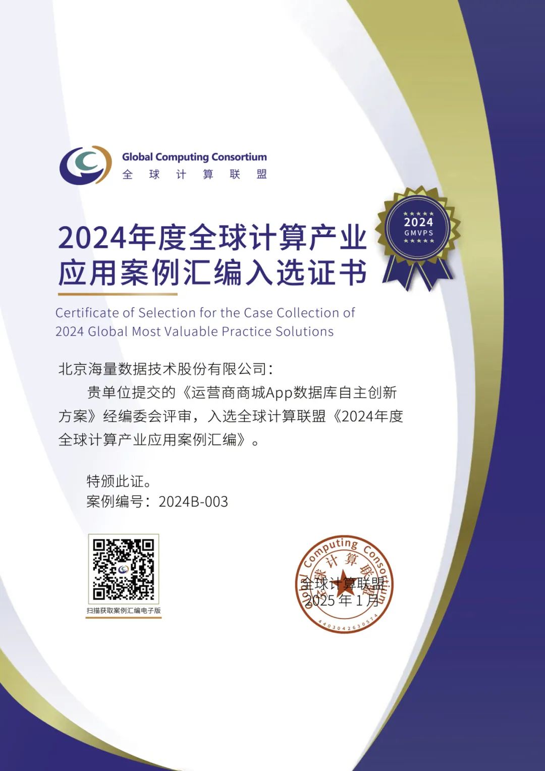 其中,联通商城系统数据库自主创新案例成功入选全球计算联盟(GCC)的《2024年度全球计算产业案例汇编(GMVPS)》智慧行业应用类案例。