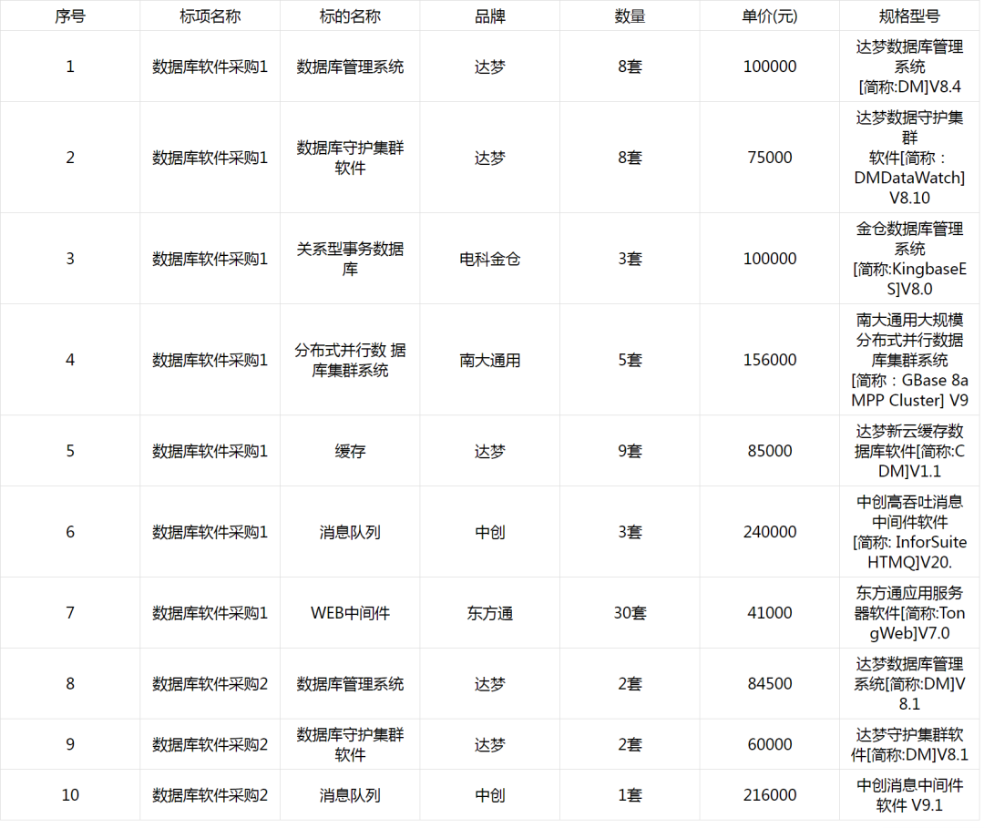 另外,在国家海洋局-广西海洋灾害综合防治体系建设项目中,南大通用也是唯一中标的数据库产品,总中标10套集中式数据库,中标约100万。