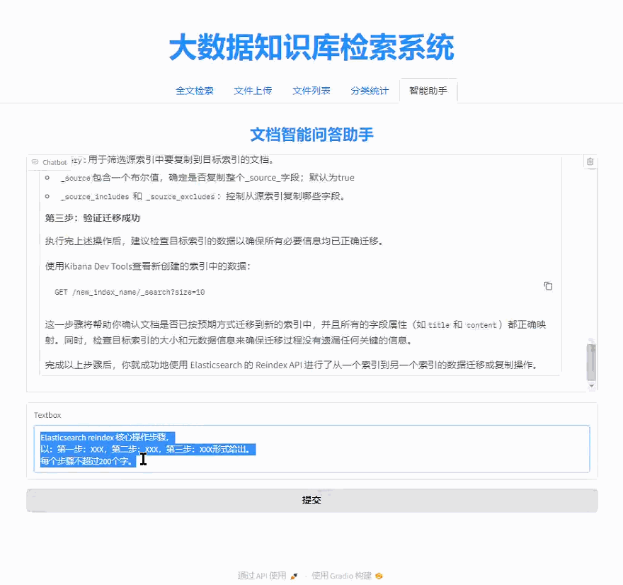 这种能力得益于 Elasticsearch 的高效检索以及 Qwen2.5-14b 的上下文理解与生成能力。