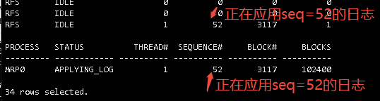 select process, client_process, sequence#,thread#,status from v$managed_standby;输出如下: